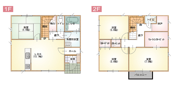 帰宅や外出時に必ずリビングを通るプランなら家族の絆が深まります。水廻りが集約されて家事導線も良好。